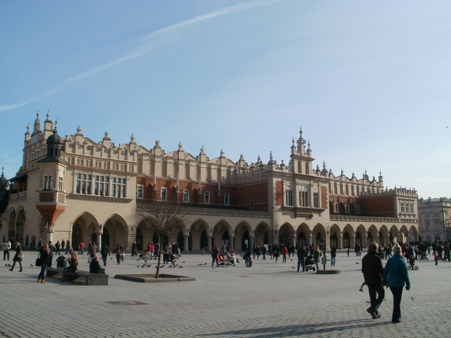 SUKIENNICE es un Mercado de los Paños o Lonja de los Paños - un edificio de puestos de trajes ubicado en el centro del mercado. El primero edificio fue construido en el siglo XIII, reconstruido tras un incendio a mediados del siglo XVI, y esta versión se puede ver hoy en día. El edificio está coronado por un ático único, que ahora se puede disfrutar de cerca, debido a que el piso superior de la Lonja de los Paños es ahora un café. Hacer buenas fotos de la Plaza Mayor tomando una taza de café. Después se puede ir a comprar recuerdos en uno de los puestos de venta de productos hechos a mano, joyas de ámbar y trajes típicos de la región.