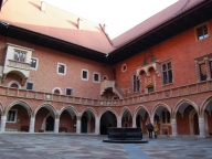 COLLEGIUM MAIUS - el edificio más antiguo de la Universidad Jagellónica, que fue fundada en 1364, este edificio todavía se utiliza desde 1400 – el patio del siglo XV rodeado de claustros es uno de los lugares más bellos de Cracovia. Aquí se puede ver el reloj figural con figuras que representan la melodía del himno Gaudeamus que es considerado el himno de los estudiantes.